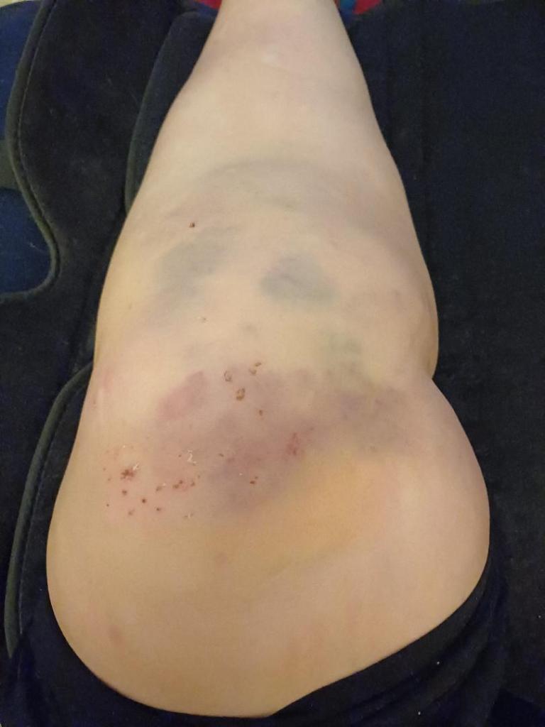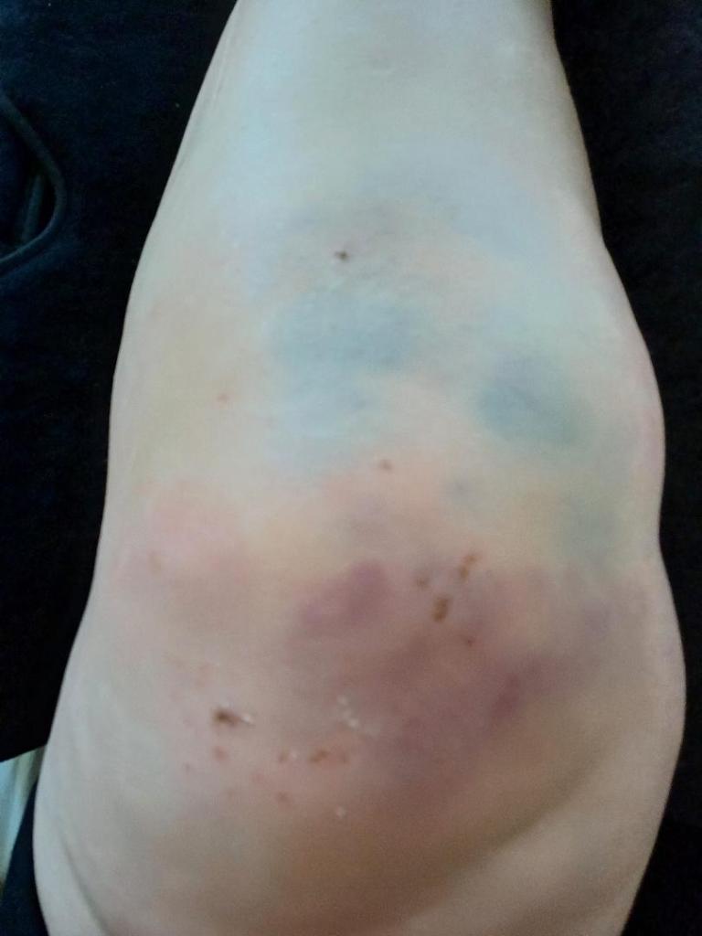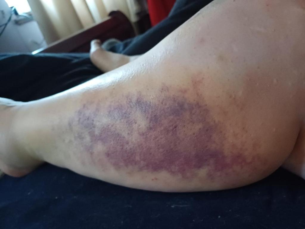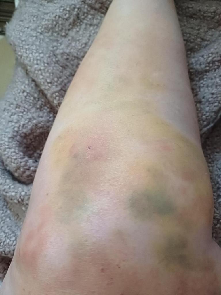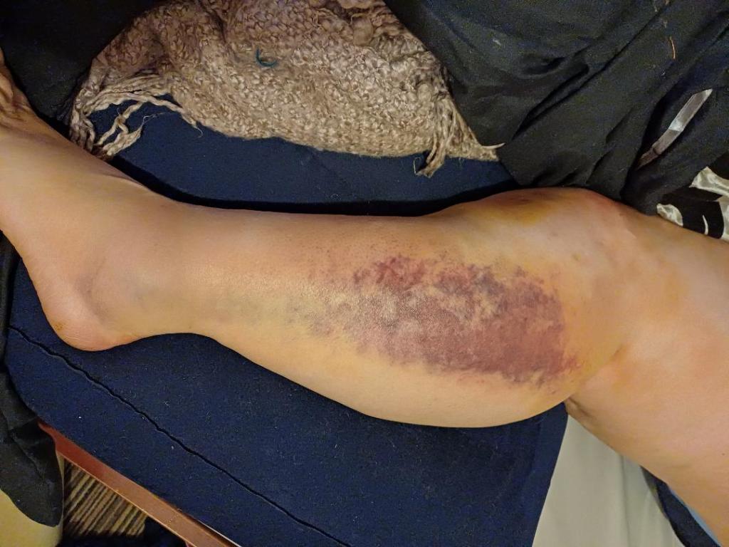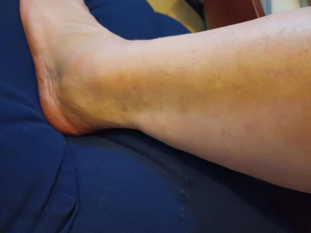 I had several trips back to the hospital as I got more worried at how it was progressing…I was reassured all was well and I needed an ultrasound. When this finally happened the haematoma was measured at 11.5 cm long by 1.5 cm wide….and 4.5 cm deep! Huge! Truly explained the colour of my leg, foot, knee, ankle etc etc…I could barely move my leg let alone stand.